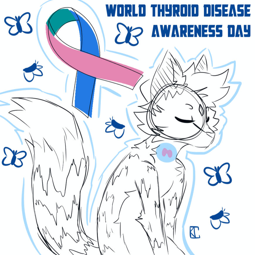 Hypothyroidism Is a condition in which the thyroid (a butterfly-shaped gland located in the neck) is underactive and cannot release enough hormones into the bloodstream in order to create energy, stay warm, and keep other organs in proper condition. It is a chronic disease and can't necessarily be cured, but does have treatments available. I was lucky to have it diagnosed earlier in my teenage years, but it is definitely something I still struggle with. Some of the symptoms include fatigue, temperature sensitivity (mostly getting cold easily), dry skin, muscle weakness, irregular heartbeat, depression / mood swings, poor memory, and as aforementioned poor growth that leads to short stature.If you've ever seen me in real life (fursuiting or not), you know for a fact that I appear to be really small and get mistaken as a minor fairly often. Ever since my diagnosis I realized I wasn't going to be getting any taller than 5'1" and I still easily get upset about it when people tease or make jokes. A majority of the time its people immediately assume I am not of-age when I go to adult spaces, whether it be security at a music venue IDing me several times or bartenders extremely hesitant on serving me. Sometimes its something as simple as not being able to reach something or others thinking I'm weird for wearing sweatshirts in high heat. I try not to say anything immediately when I get upset, but it bothers me a lot. Even if I am already doing basically everything I can in order to cope with having hypothyroidism I still feel the need to put in the extra 100% to prove my worth. I don't want the novelty if my height surpassing me as a person and the efforts that I make.So please, if you are reading this please understand the jokes and jabs I get very frequently bother me a lot. I am extremely self conscious about this and I want to be respected as a grown adult that I am. I hope that this was educating and that you please respect my boundaries and my condition. 💙🦋